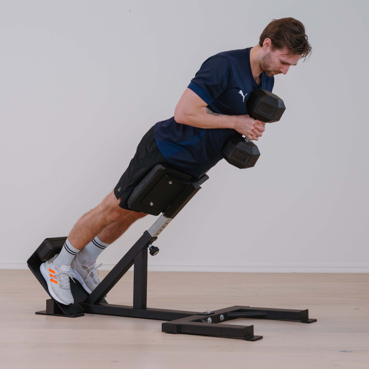 Slitesterke og godt polstrede puter gir optimal komfort, og den kraftige stålrammen sørger for god stabilitet under trening. Benken er konstruert for effektiv aktivering av korsrygg, setemuskulatur og kjernemuskler, og er dermed et nyttig verktøy både for styrkeoppbygging og skadeforebygging.