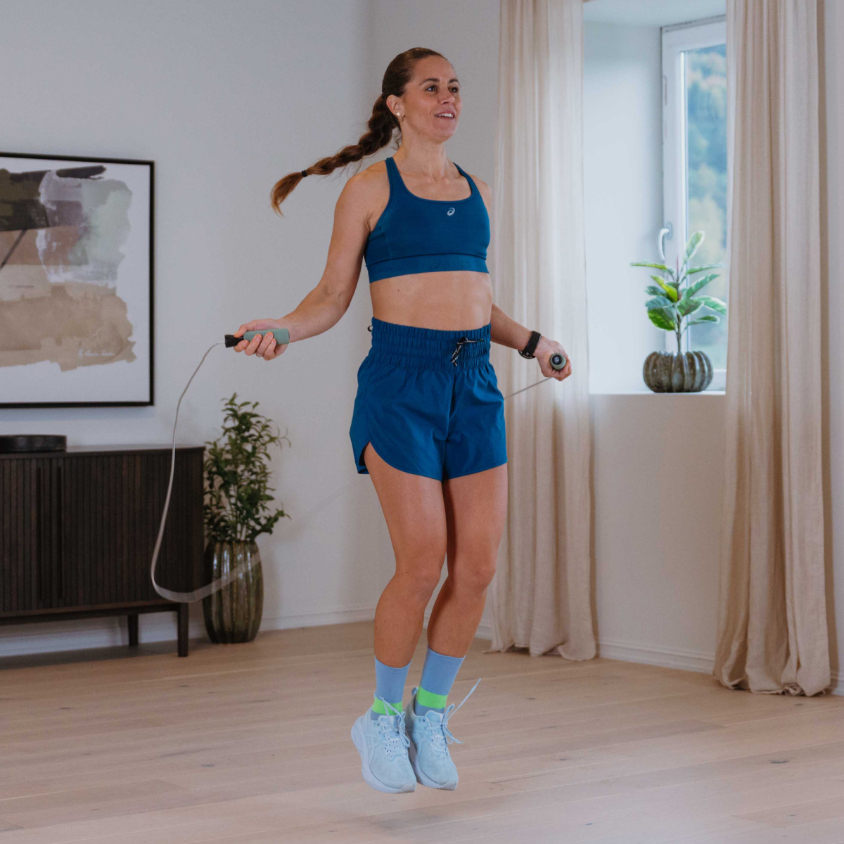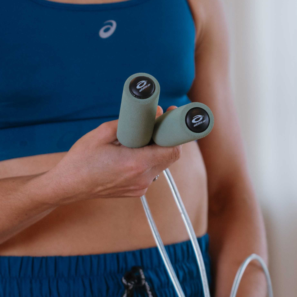 Hopprep med plastbelagd vajer och handtag med skumgummi och kullager. Stärker benmusklerna och ger bra kondition. Stärker benmusklerna och ger bra kondition.