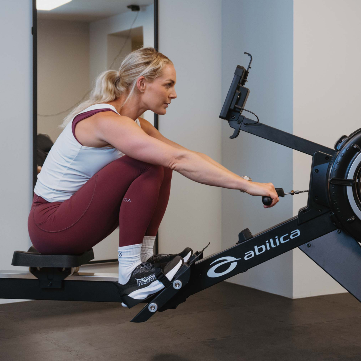 Abilica Premium Row 90 är utvecklad för företagsmarknaden och idrottare med höga krav på roddmaskinens funktionalitet och design. Solid konstruktion, med ett motståndssystem baserat på luft, detta är en roddmaskin utvecklad för den som vill ha det bästa. Storlek, beständighet och komponentsammansättning är anpassade till den skandinaviska marknaden. De 10 motståndsnivåerna ger känslan av en rejäl roddmaskin som tål tuffa träningspass och ger dig kvalitet i varje lyft. Kan delas i två delar vid förvaring. Avancerad dator där du kan förinställa önskad måluppfyllelse för träningspasset. Välj mellan att räkna distans, kalorier eller tid. Datorn kommer även med olika alternativ för intervaller och en snygg layout som gör det enkelt att hålla koll på alla värden längs vägen. Ovanför datorn finns även en praktisk hållare för mobiltelefon.