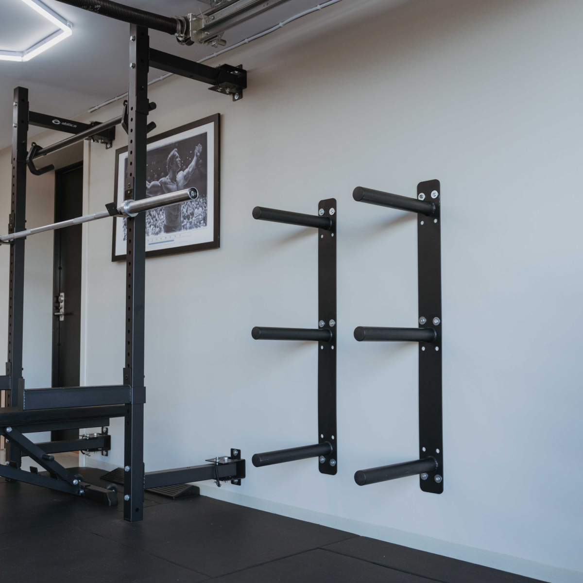 Förvaringsställ för vägg för 50 mm viktskivor.