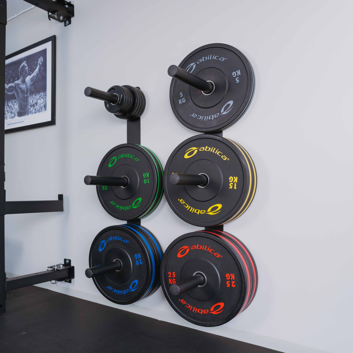 Abilica WallStorage WeightPlates är ett väggförvaringssystem som kan monteras både vertikalt och horisontellt, beroende på hur du vill utforma ditt träningsrum. Stället passar lika bra i hemmagymmet som på företag. Varje förvaringspinne har en längd på 40 cm och en maximal belastning på 100 kg per pinne.