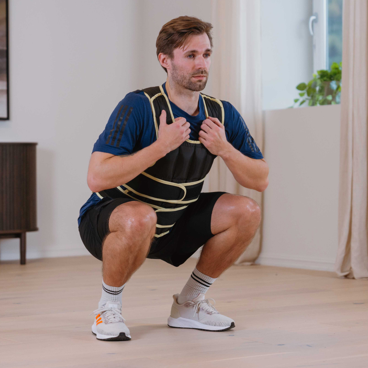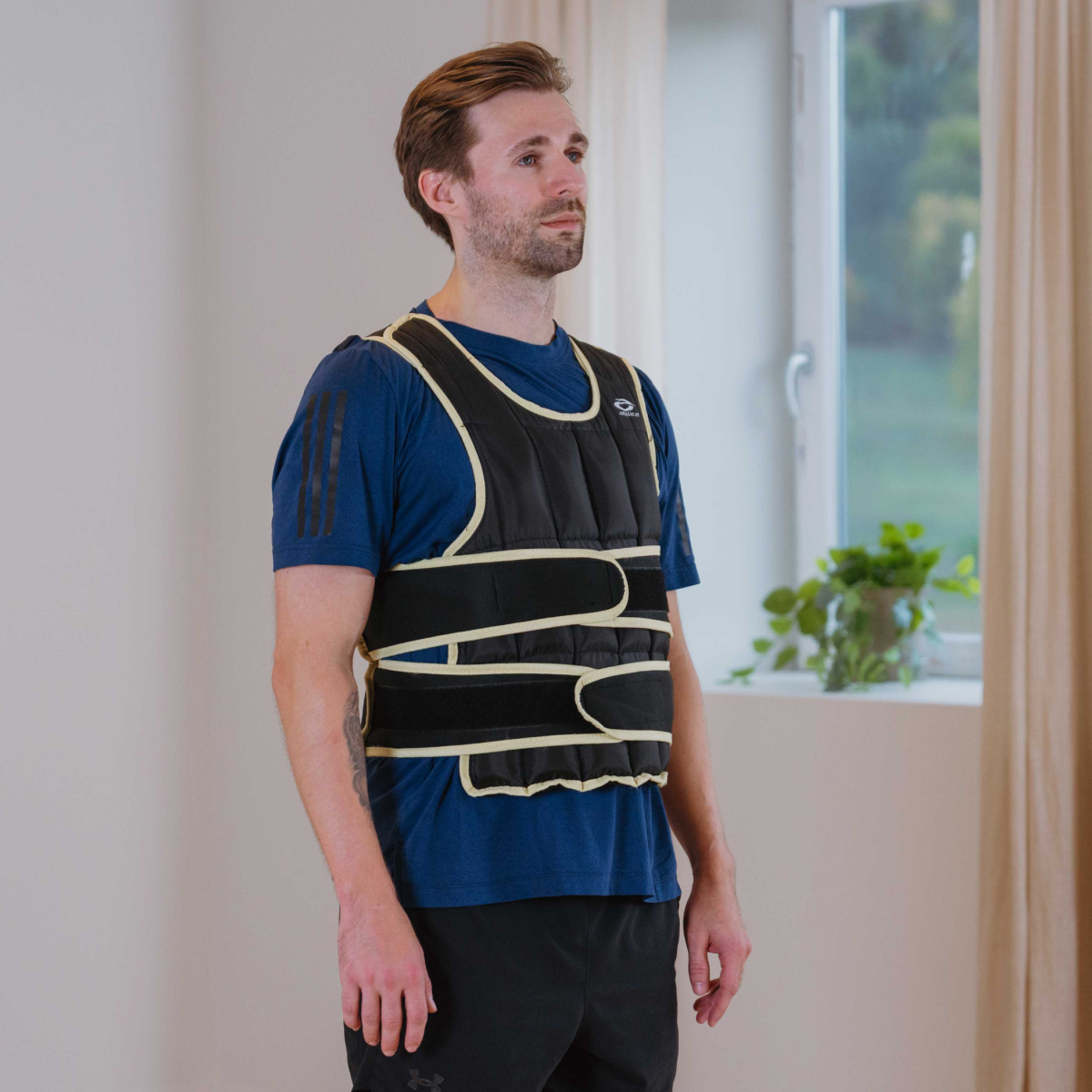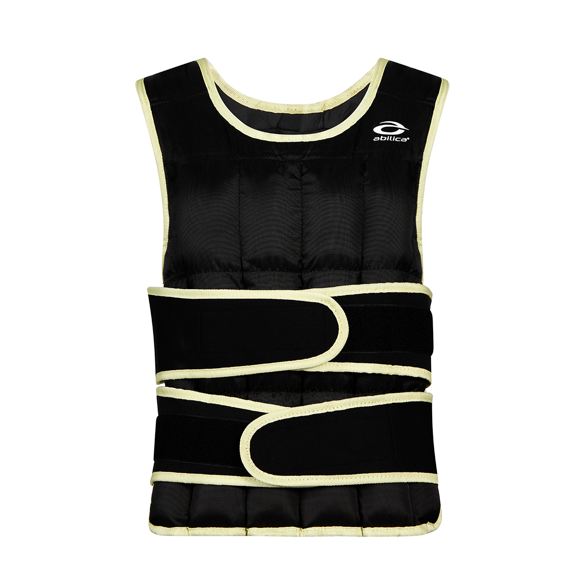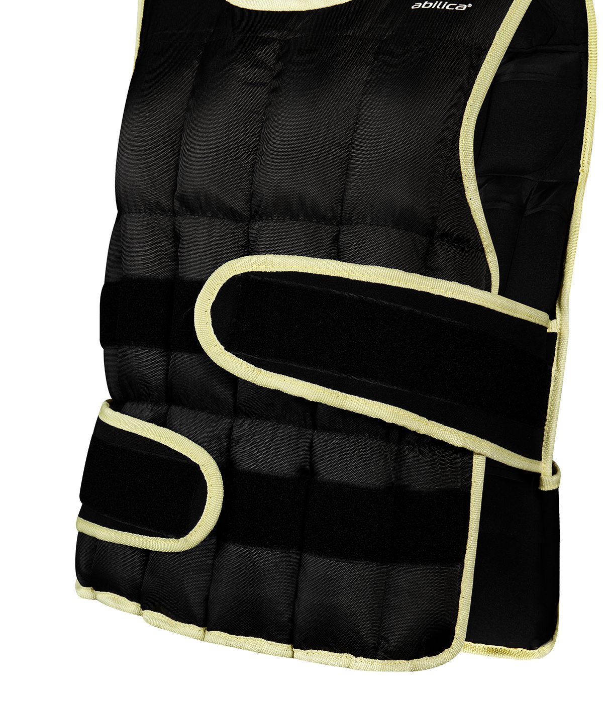 De två breda och kraftiga kardborrlåsen framtill ger en säker och justerbar passform. Extra vaddering på axlarna ger hög komfort även under tuffa träningspass. Västen sitter tätt och stabilt mot kroppen utan att begränsa rörelsefriheten.